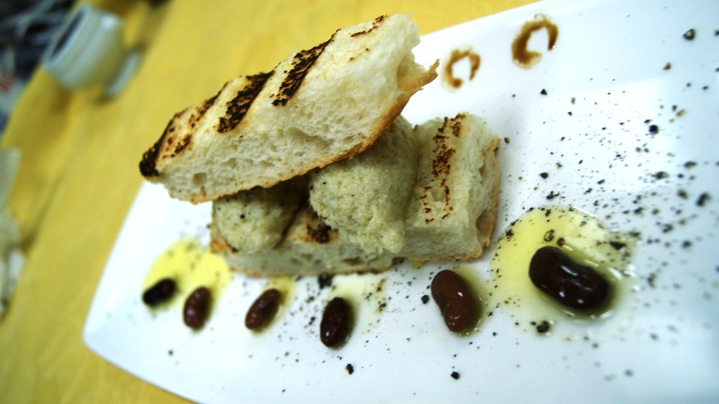 Il baccalà mantecato con crostone di pane grigliato fagioli borlotti e pepe nero.