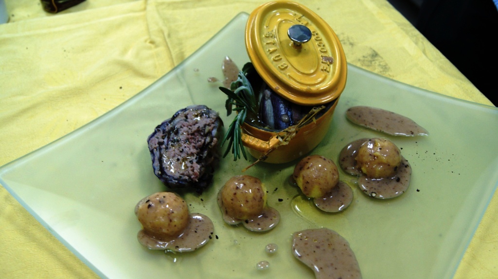 Radicchio verze brasate in cocott di ghisa con polentina e salsa ginger.
