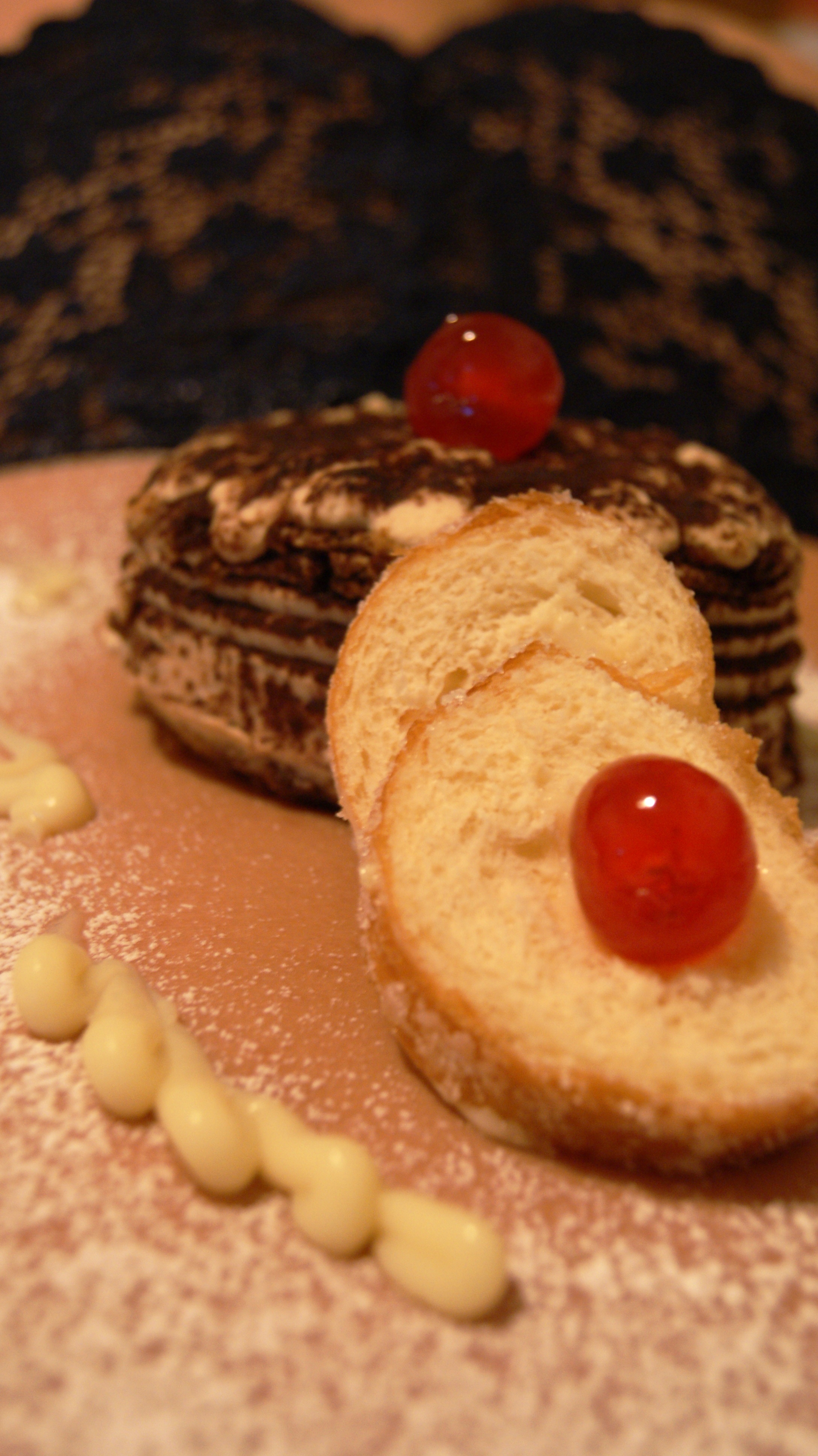 Tiramisù sulle spalle della Modella con fondo schiena come sfondo.