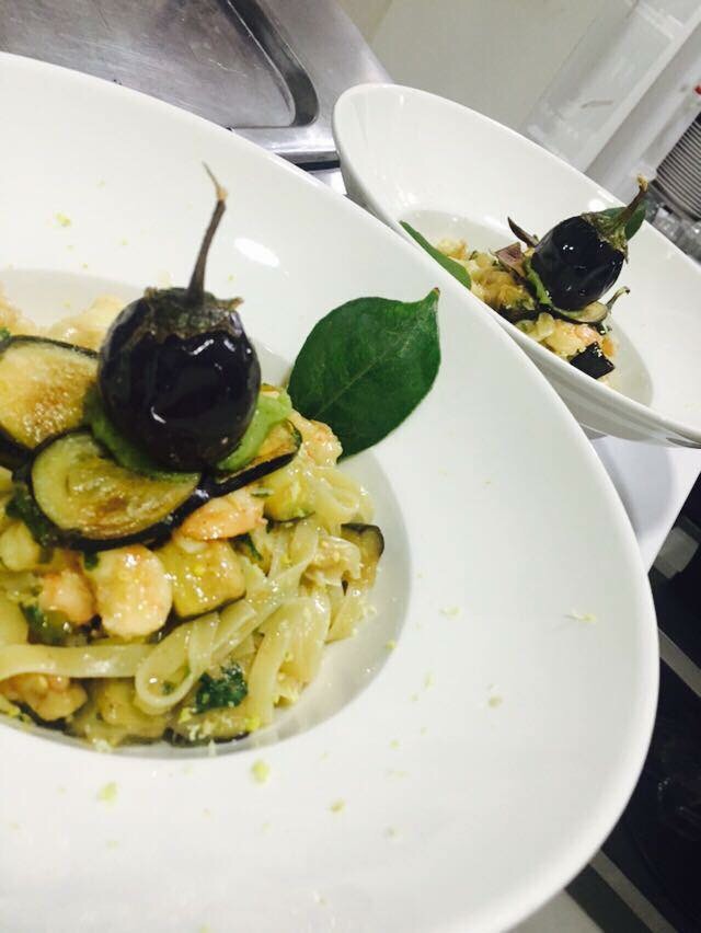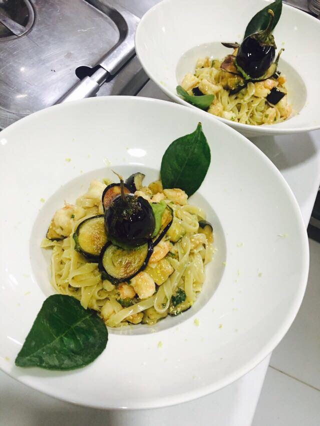 Fettuccine shrimp and lemon eggplant Chef GianMaria Le Mura