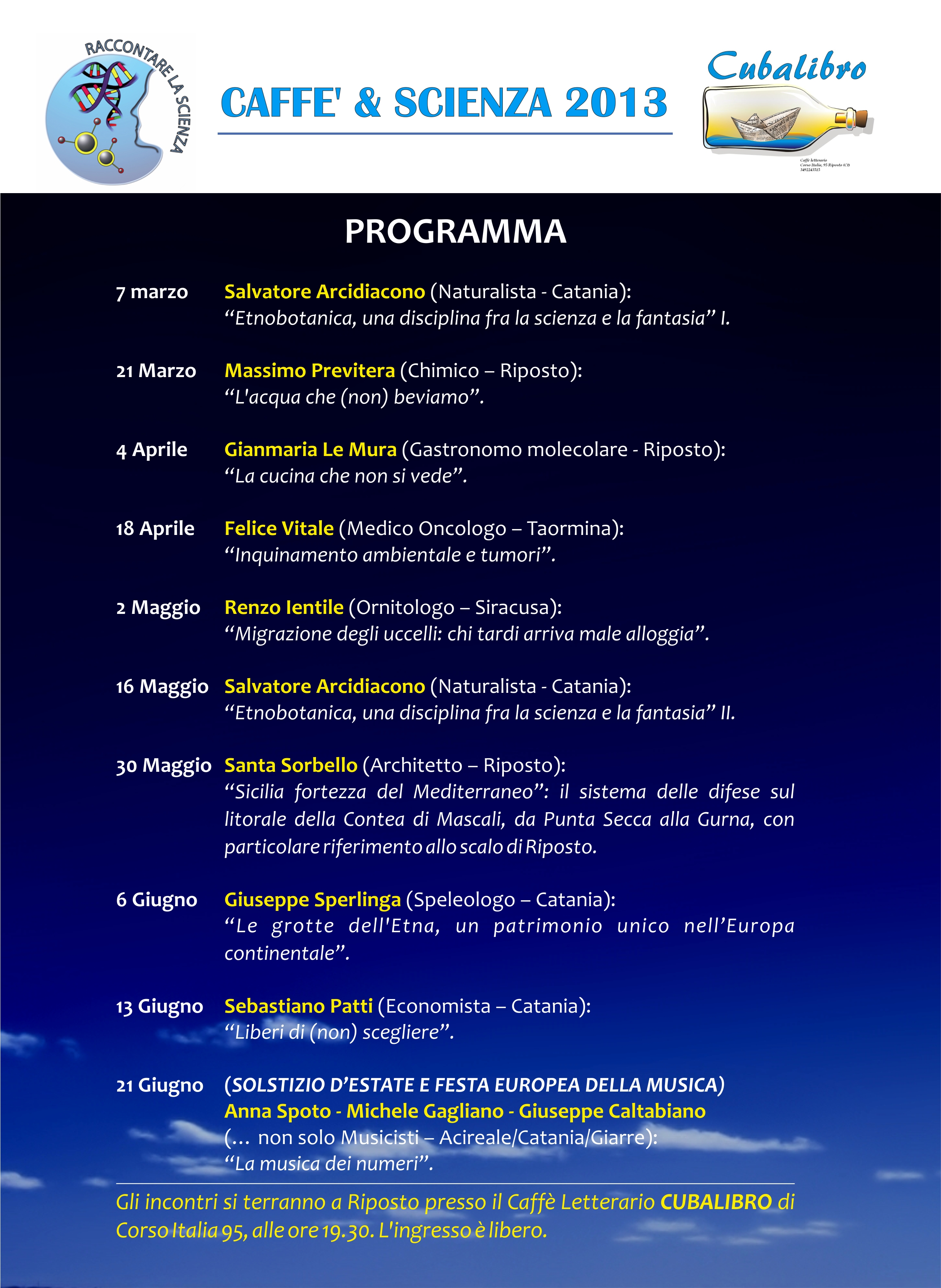Nei prossimi giorni questi gli appuntamenti a Riposto dove Salvatore Arcidiaco