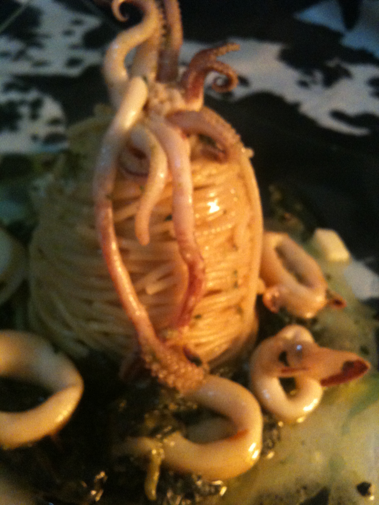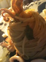 - Spaghetti con friarielli e primosale Caciofiore siciliano pepato ( dettaglio testa di calamaro)