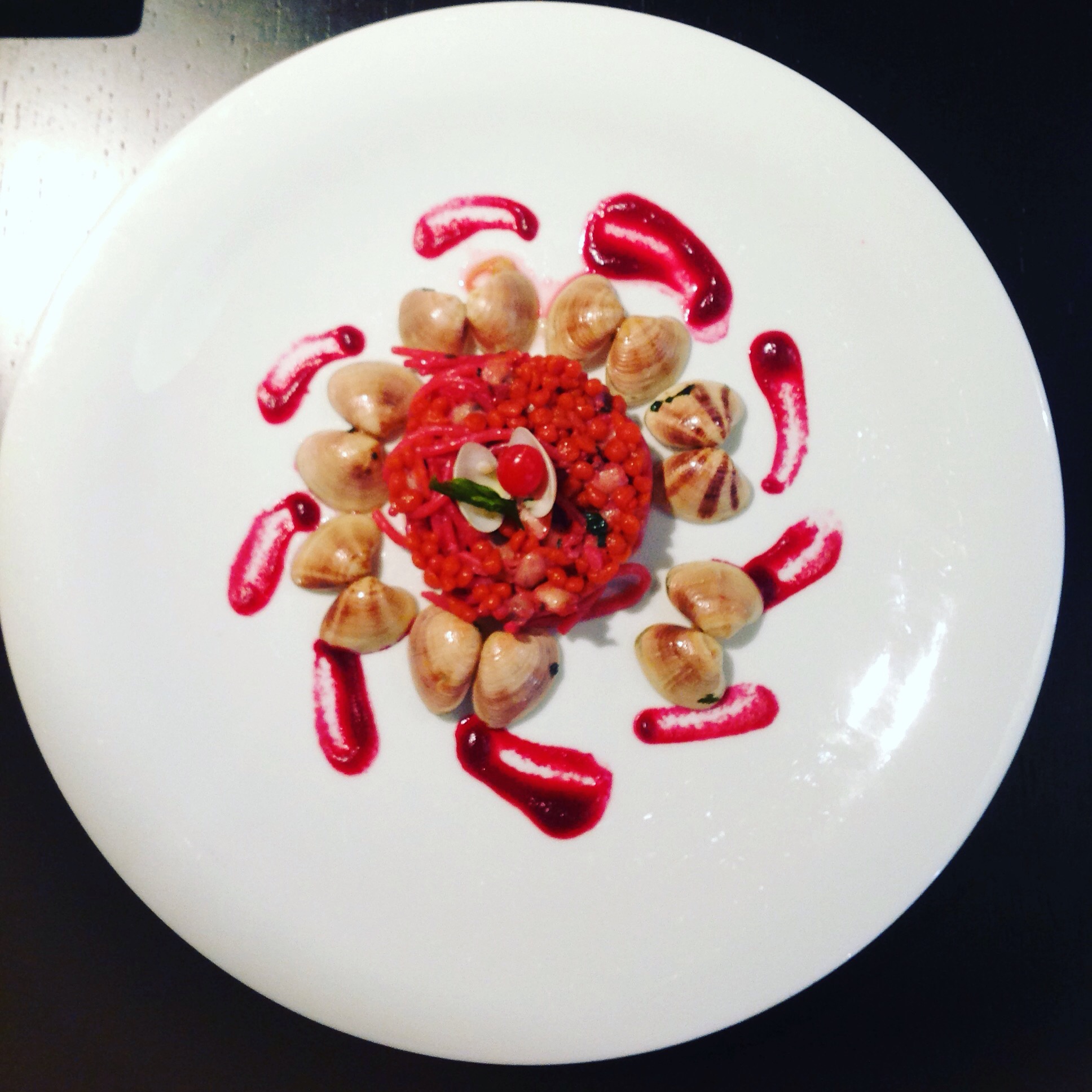 Red spaghetti tomato and paprika with clams,@chefexecutivemastergianmarialemura