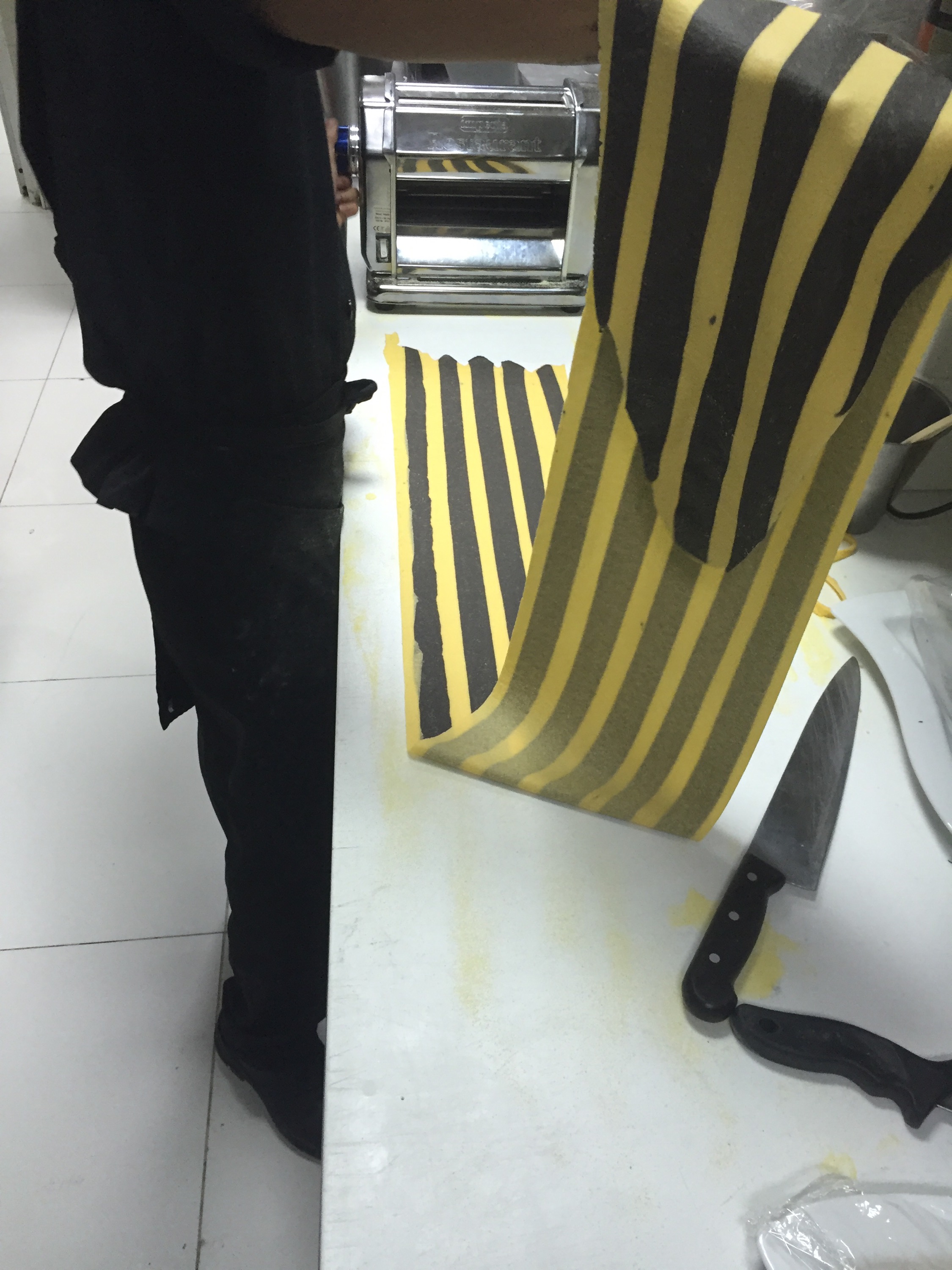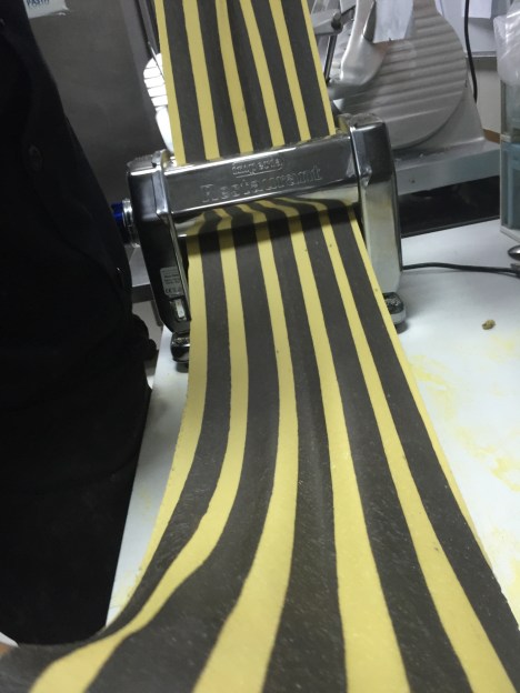 Then, with the dough sheeting, pass it to the rollers 5 times to recompile and refine it and then gradually lower the measurement to the desired size.