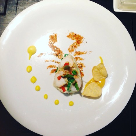 The granzeola is made with tomato powder and linsala set at the moment with Dutch sauce and cips potato, @chefexecutivemastergianmarialemura